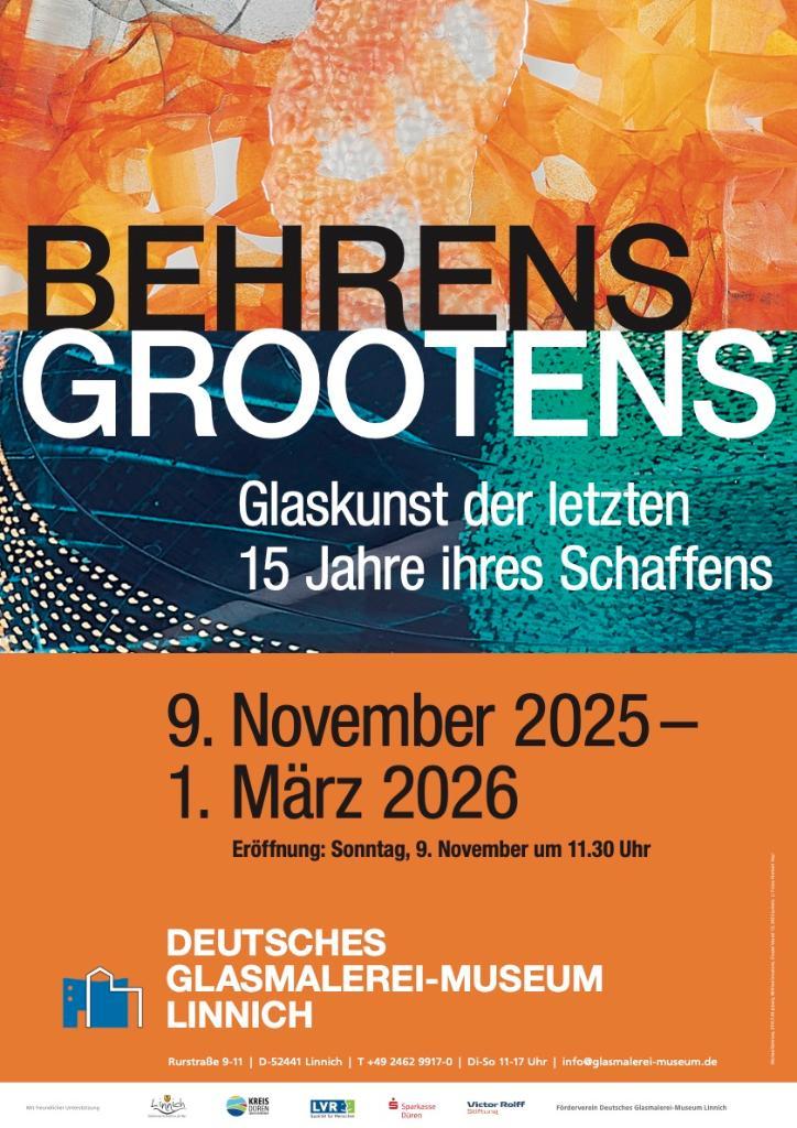 Das Deutsche Glasmalerei-Museum Linnich zeigt ab Sonntag, 09. November 2025 bis 01. März 2026 die faszinierende Glas-Welt ihrer Werke. Die Künstler geben einen Einblick in die letzten 15 Jahre ihres Schaffens.