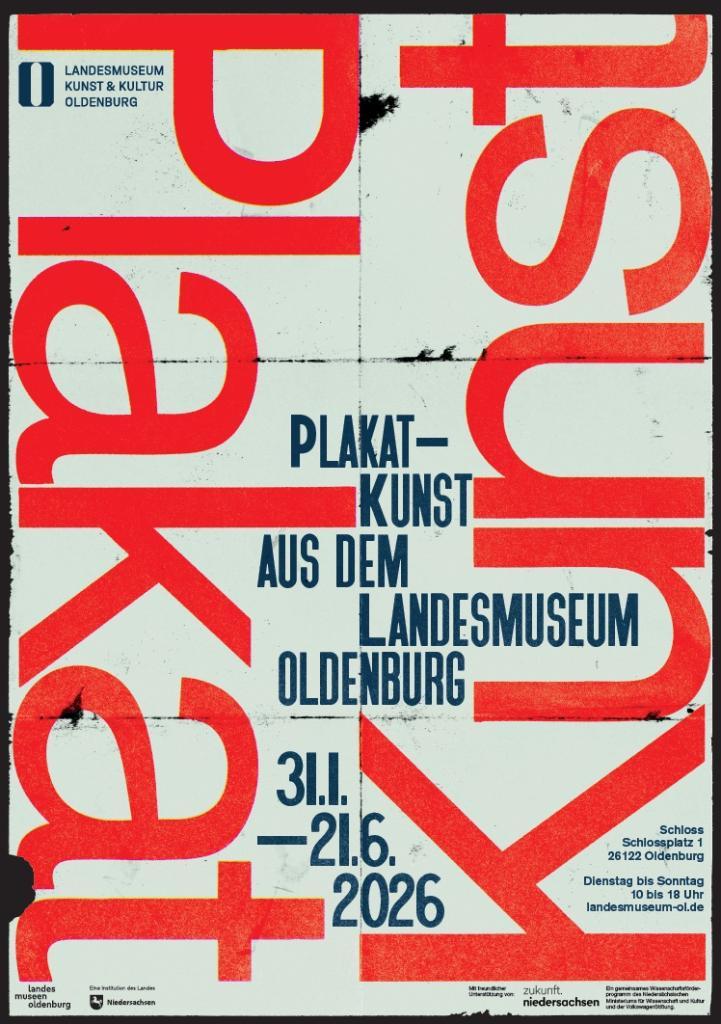 Vom 31. Januar bis zum 21. Juni 2026 präsentiert das Landesmuseum Kunst & Kultur Oldenburg im Bibliotheksflügel des Schlosses Werke aus seinem reichhaltigen Bestand an Kunst nach 1945: Neben selten gezeigten Grafiken, Gemälden und Skulpturen werden erstmals auch Künstlerplakate im Mittelpunkt der Präsentation stehen.