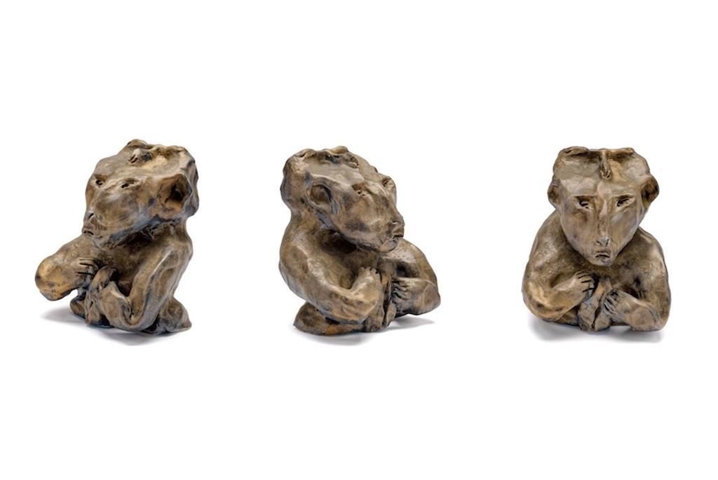 Ich versuche Wesen, die mich bedrängen und die mich freuen, die einfach aus der Hand heraus getrieben werden, eine Existenz zu geben. Es sind Tiere und Menschen, vielleicht ist es eine ganz eigene Spezies, die sich um den Unterschied von Mensch und Tier gar nicht mehr kümmert. So werden aus Armen am Ende Tierköpfe, keine Hände, aber das ist selbstverständlich so, es muss sein. So kennen sie Scham, aber sie bekennen sie lustvoll. Sie sind von freundlicher Freude, humorvoll – sie sind getrieben und sie treiben weiter. Angst und Übermut halten sie gefangen. Ist in ihnen eingefangen. Sie wollen sein. Sie haben etwas zu sagen, auch wenn sie ganz hartnäckig schweigen. Die Glasur führt das Irdene dazu, sie ist wie eine Haut – so wie das Wesen im Naturzustand war – und gleichzeitig ist sie das Kleid, dessen wir alle benötigen, um auftreten zu können. Die Glasur ist ein Schutz und der richtige Namen für das Neue Wesen – vielschichtig, glänzend, abweisend, hineinführend, und: sie stellt auch Fragen. Was ist das eigentlich, was wir da jetzt angekleidet schutzbedürftig sehen.