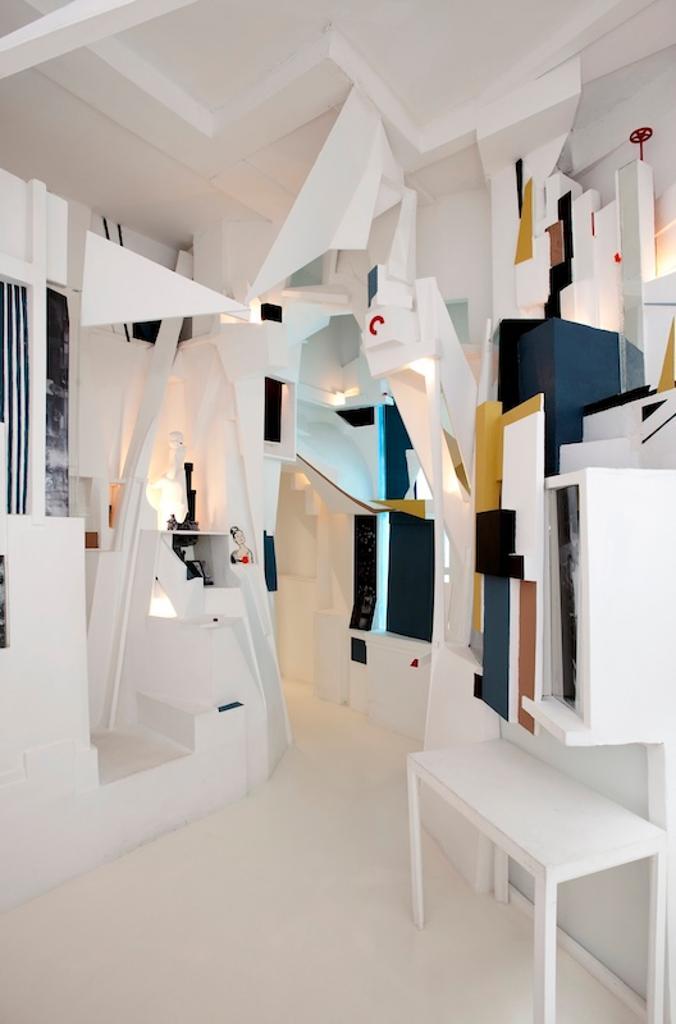 Ausgangs- sowie Mittelpunkt des Rundgangs sind die Nachbauten von El Lissitzkys Kabinett der Abstrakten (1927) und Kurt Schwitters‘ Merzbau (1933). Beide Räume, die ehemals in Hannover existierten, verkörpern einflussreiche Etappen der abstrakten Kunst und ermöglichen ein unmittelbares Erlebnis des Zusammenspiels von Farbe und Form.