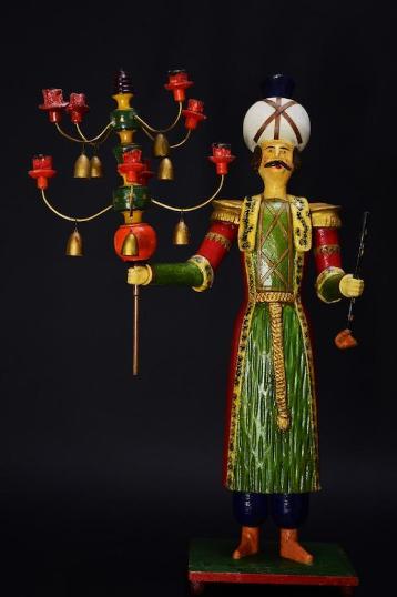 Das Schloßbergmuseum präsentiert in seiner Ausstellung Weihnachtswelten die sächsische Spielzeug-Sammlung von Irmhild und Volker Karp aus Dresden. Ein Spielzeugpferd auf Rädern ist das größte Stück der Sammlung von irmhild und Volker Karp. Die eifrig bespielte Holzfigur repräsentiert das Spielzeug schlecht-hin. Seit Jahrhunderten sehnten sich Kinder nach einem eigenen Pferd: Bürger-kinder spielten mit kleinen Pferdchen aus Ton, Prinzen ritten auf dem Schaukel-pferd. Dieser Schimmel aus dem frühen 20. Jahrhundert steht auf einem Brettchen mit Eisenrädern, so dass er in der Phantasie aus dem Stall und wieder hineingeführt werden konnte.