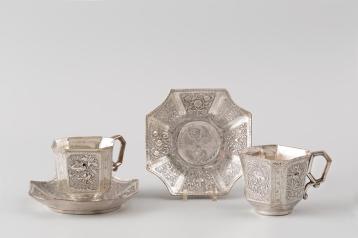 Kaffeetassen mit Untertellern, Werkstatt Cheng De, Guangxu-Ära, ca. 1900. Nachlass P. Roesberg / H. Hildebrand. © Rheinisches Bildarchiv Köln, Marion Mennicken