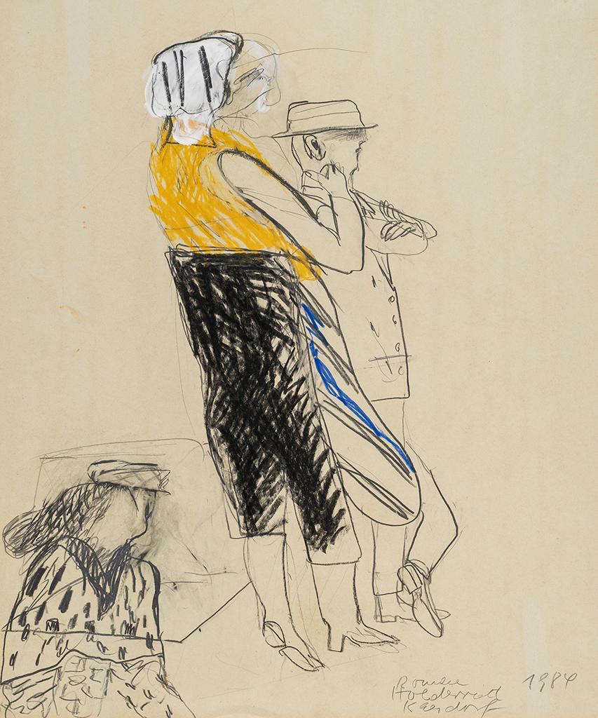 Auffällig ist auch, dass ab 1976 weitgehend nur noch Frauendarstellungen entstehen. Bis dahin dominieren Männer die Zeichnungen. Die Hinwendung zu weiblichen Figuren erfolgte in einem längeren Prozess, eine Motivation könnte gewesen sein, dass die UNESCO 1975 das »Internationale Jahr der Frau« ausrief. Es wurde damit ein politisches wie gleichermaßen gesellschaftliches Zeichen gesetzt, das weltweit auch Künstlerinnen ermutigen sollte, für eine größere Sichtbarkeit im Kunstbetrieb zu kämpfen. Als Feministin hat sich Holderried Kaesdorf zwar nie gesehen, gleichwohl hat sie sich zeitlebens für die Darstellung von Frauen in der Kulturgeschichte und für die Werke insbesondere weiblicher Kolleginnen interessiert.