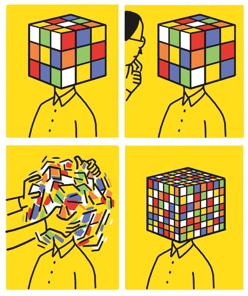 Obwohl international erfolgreich, kämpft auch der Künstler Christoph Niemann mit existentiellen Fragen. Auf einer Ausstellungswand zeigt er, wie er mit Zweifeln wie „Ich bin nicht gut genug“, „Meine Arbeit ist irrelevant und ich bin bald pleite“ oder „Ich habe keine Ideen mehr“ umgeht. Dabei erhält man einen Einblick in sein künstlerisches Vorgehen und erfährt, wie er auf seine Ideen kommt: „Die größte Erkenntnis, die ich über die Jahre gewonnen habe, ist: Man kann nichts erzwingen. Man kann nur gute Rahmenbedingungen schaffen, und dann versuchen sich mit kleinen Schritten guter Arbeit zu nähern”, sagt Niemann.