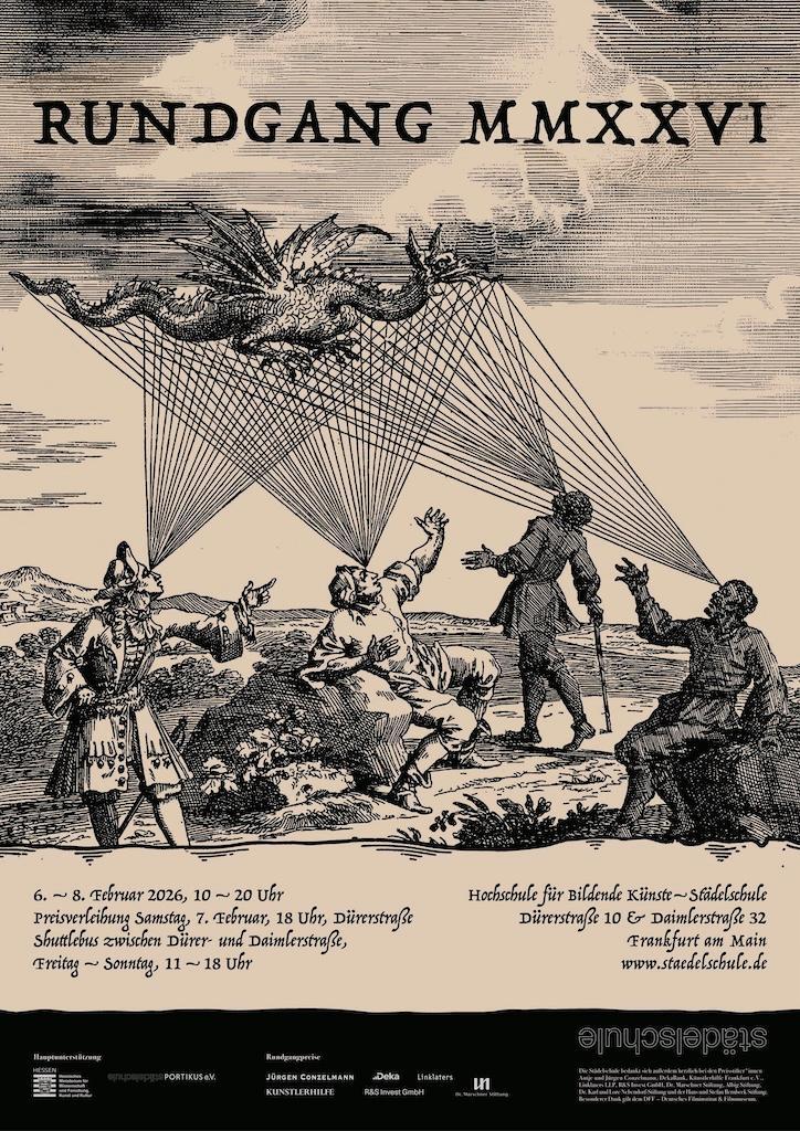 Der diesjährige Rundgang findet von Freitag, den 6. Februar bis Sonntag, den 8. Februar 2026 statt, täglich von 10 bis 20 Uhr an beiden Standorten der Städelschule.