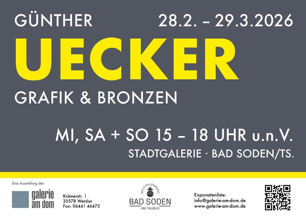 Das Interesse der für die Ausstellung verantwortlichen Wetzlarer Galerie am Dom an Werk und Person Günther Ueckers geht bis in die 1990er Jahre zurück. Bereits damals wurden seine grafischen Prägungen in der Galerie gezeigt. Seither begleitete die Galerie sein Werk kontinuierlich, realisierte bedeutende Ausstellungen – von der ZERO-Schau 2003 in Wetzlar bis zur Präsentation der „Huldigung an Hafez“ 2022 in Bad Homburg. Diese langjährige Nähe verleiht der Ausstellung in Bad Soden eine besondere Authentizität. „Sie ist kein zufälliges Projekt, sondern das Ergebnis einer Beziehung und tiefen Bewunderung seines Werks und unseres intensiven Sammelns seiner Arbeiten, die diese vielschichtige Präsentation möglich machen“, so Galerist Michael M. Marks.