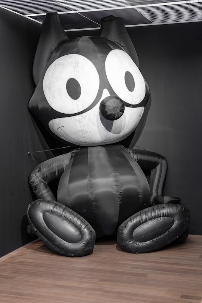 Die Bandbreite der Exponate reicht von monumentalen Arbeiten wie Mark Leckeys zehn Meter hoher aufblasbarer Skulptur „Inflatable Felix“ (2020) – dem ersten Fernsehbild der Geschichte als Pop-Ikone – bis hin zu André Caderes nur 29 Zentimeter langem, handbemaltem Stab „Barre de bois rond“ (1976), der einst in fremde Ausstellungen geschmuggelt wurde.